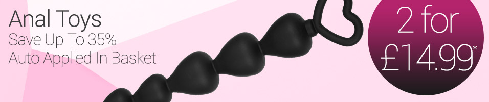 Save up to 35% on anal toys, so treat yourself to some brand new anal toys with 2 for £14.99, the offer is valid on anal toys including butt plugs, anal beads and more. Just choose any two selected anal products and save money on some of our favourite anal toys.