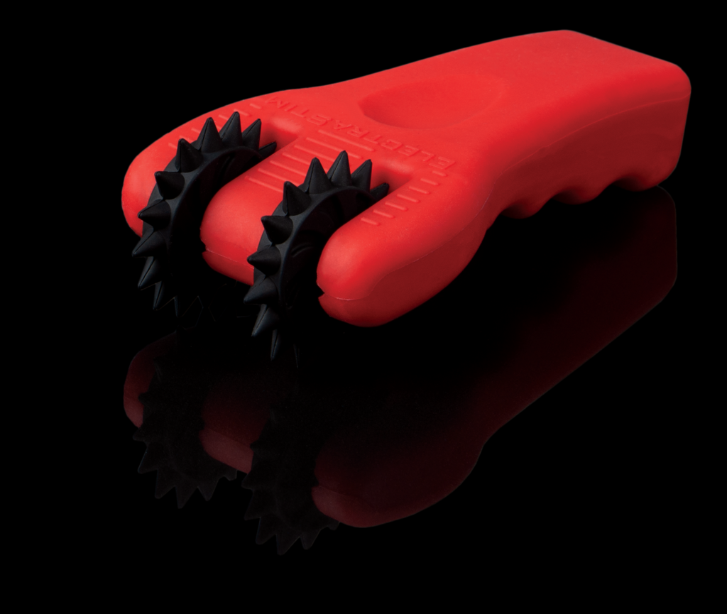 This electrostimulation silicone Wartenberg pinwheel electro bondage accessory from ElectraStim operates like a traditional fetish pinwheel, but using silicone instead of metal wheel of pins, allowing you to feel the pressure of the silicone spikes as they wheel over the surface of your skin but instead of sharp pins you can focus on the sensations of electro stimulation. This BDSM electrosex toy attachment for your stimulator is great for you to use alone during self-exploration or for use with a partner as a couple to explore a more kinky side to electroplay.