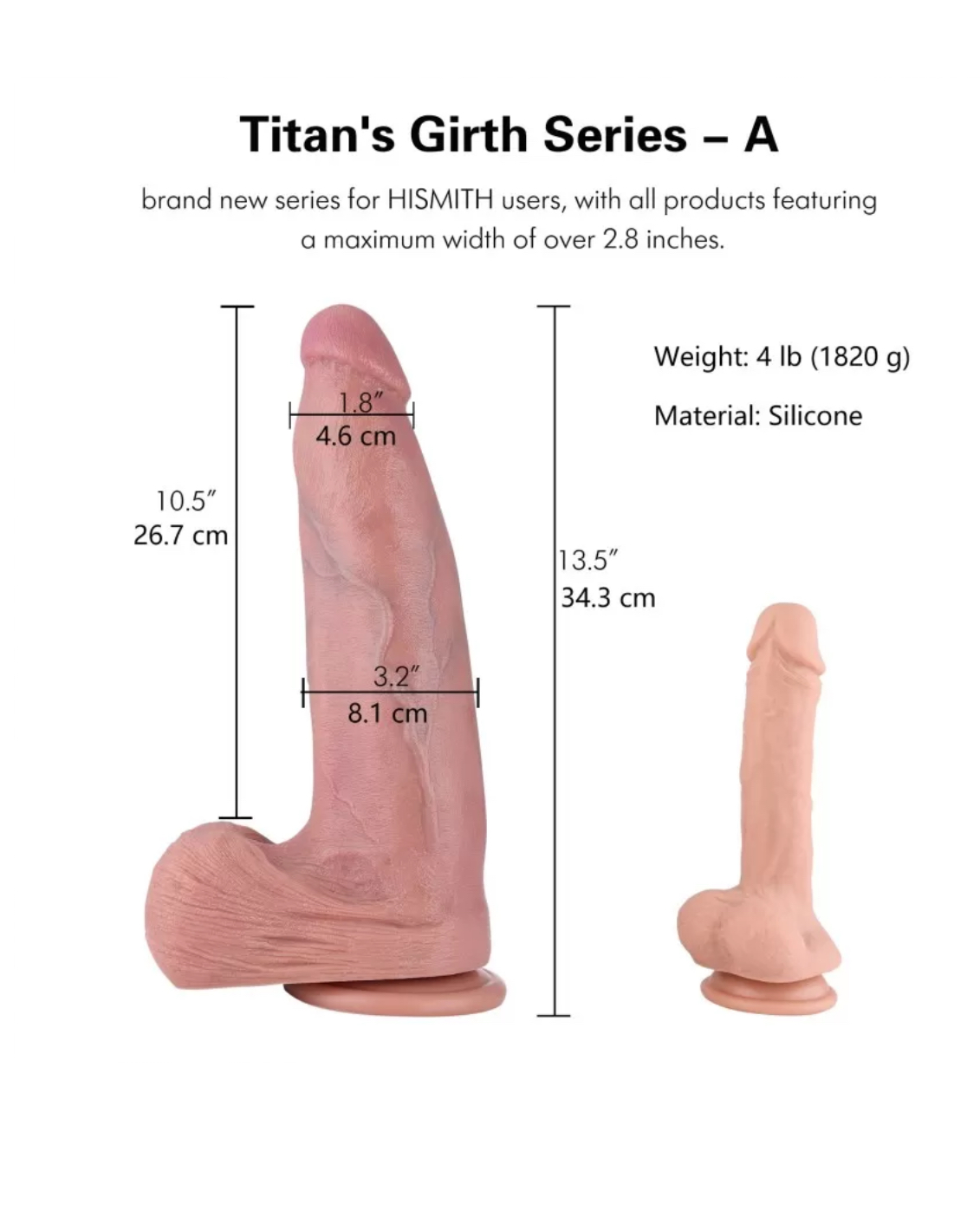 Size: Length: 13.5" (34.3 cm), insertable length: 10.5" (26.7 cm), maximum width: 3.2 " (8.1 cm). Weight: 4 lb (1820 g)