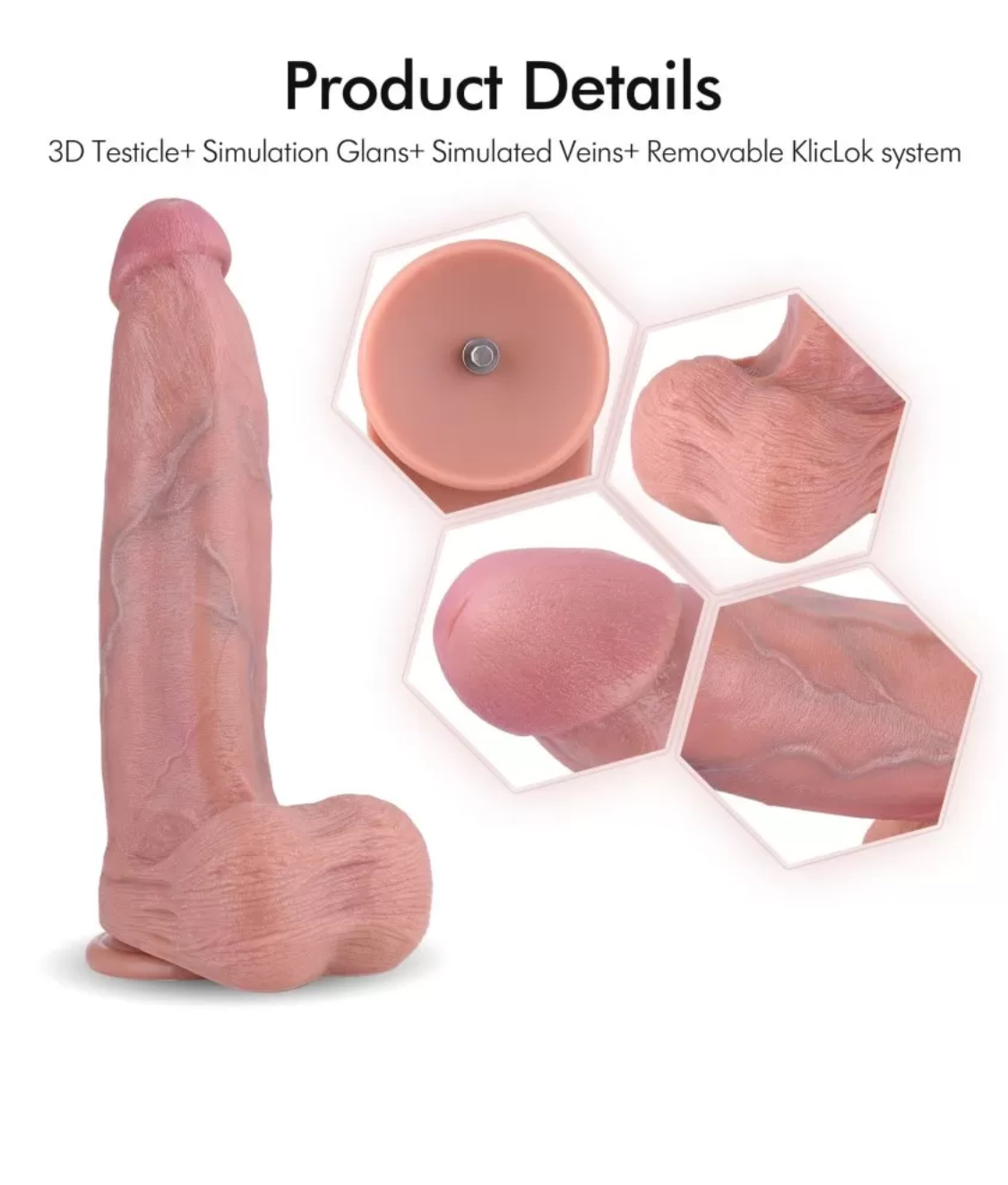 Removable Kliclok: You can attach it to a Hismith sex machine (must be the powerful one), or use it as a suction cup dildo.