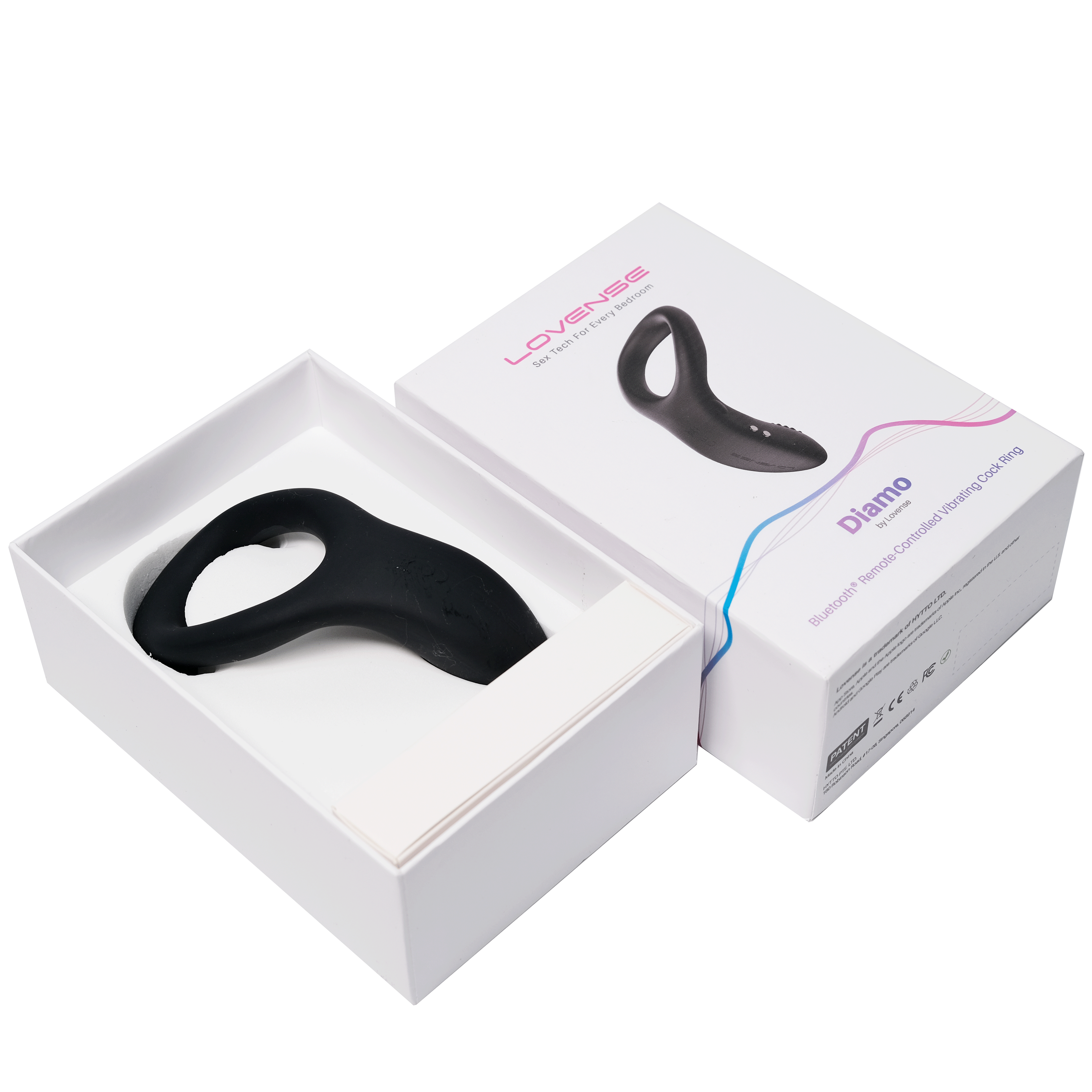 The Lovense Diamo is a Bluetooth remote and App-controlled wearable vibrating cock ring.
