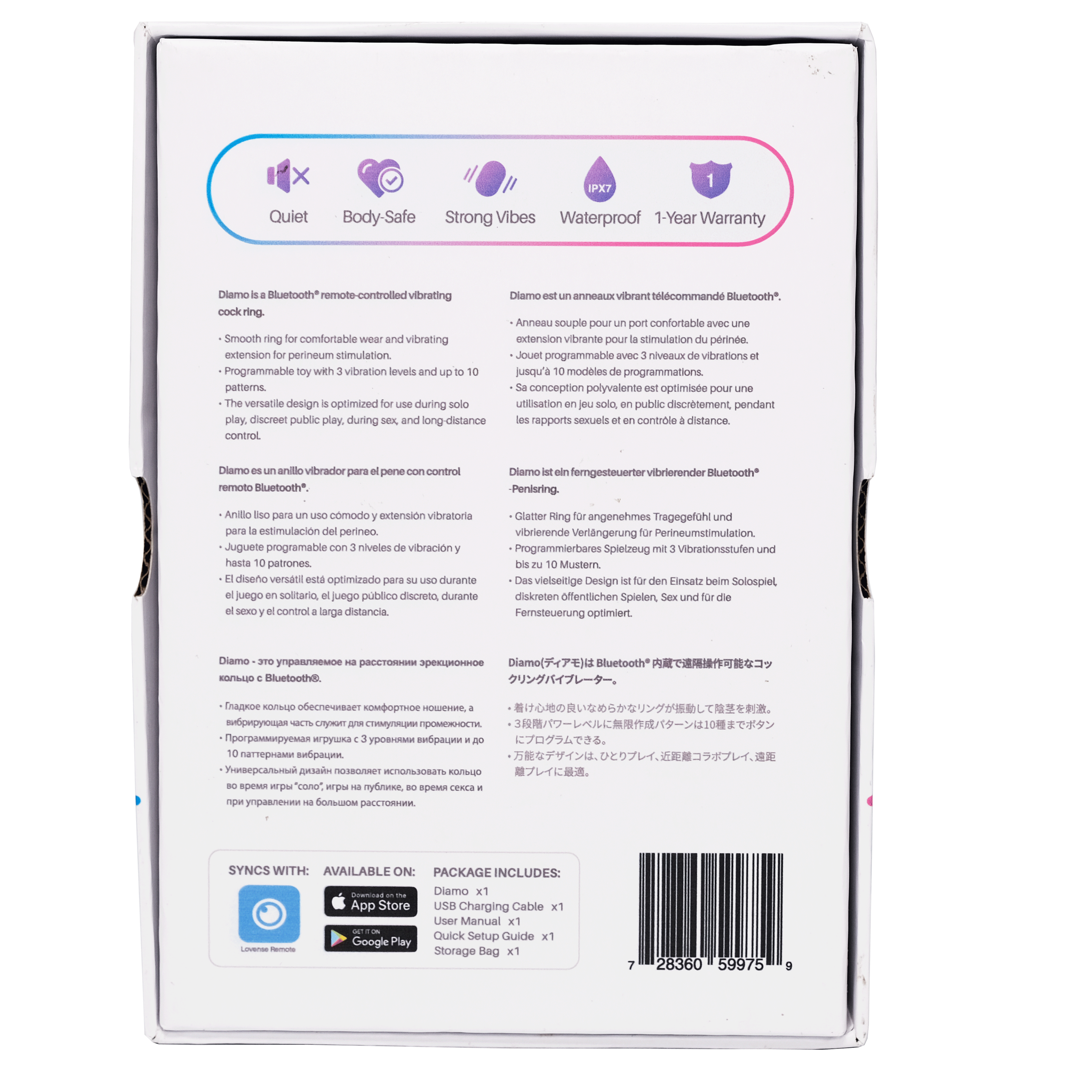 Diamo by Lovense is a smooth silicone ring vibrator, designed to be worn around the penis and scrotum, a powerful motor controlled which can be controlled by the Lovense Remote App for Bluetooth remote control and long distance control from anywhere.